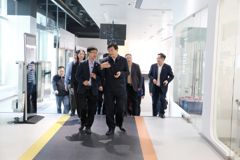 在智能轨道交通区域,考察团了解了公司所掌握的四大核心系统技术,包括自动售检票系统、站台门系统、综合监控系统和通信系统,以及核心技术在地铁中的实际应用场景还原。在参观过程中,大家对公司具有世界领先水平的人脸识别技术也表达出浓厚兴趣,胡主任还饶有兴致地体验了公司最新的人脸识别检票机,体验“刷刷脸”就可以轻松坐地铁、过安检。考察团还了解了公司对于支付方式的技术创新演变,从最初的现金现付到如今的刷脸支付,感叹科技为人们生活带来的巨变与便利。